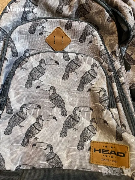 Раница за училище или път Сива раница HEAD с папагали → Обява 47275545