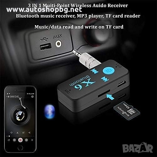 • Адаптерът разполага с 3.5 mm stereo-jack AUX изход, microUSB вход за зареждане и мултифункционален бутон