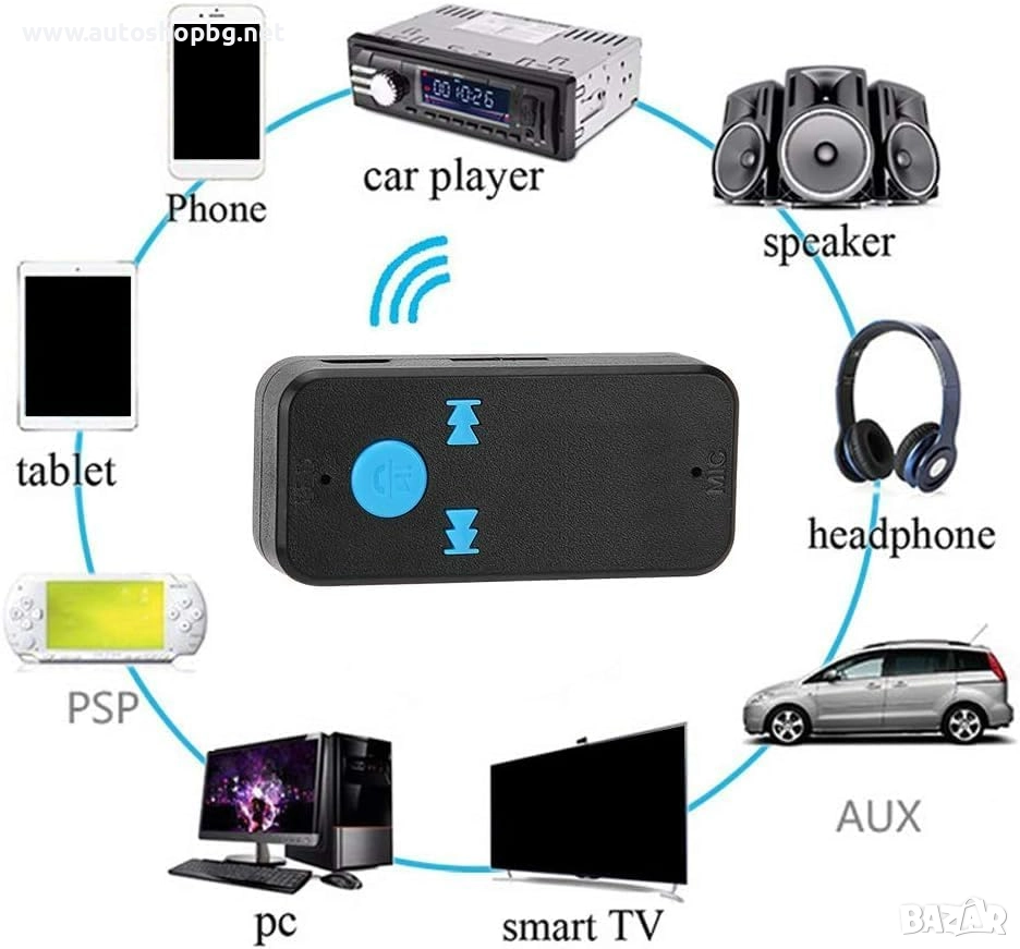 • Внимание: за да превърнете жична колонка, аудио система или какъвто и да е източник на звук в безжичен, то източникът трябва задължително да разполага с AUX IN, а не с AUX OUT. Само така ще можете да използвате адаптера по предназначение.