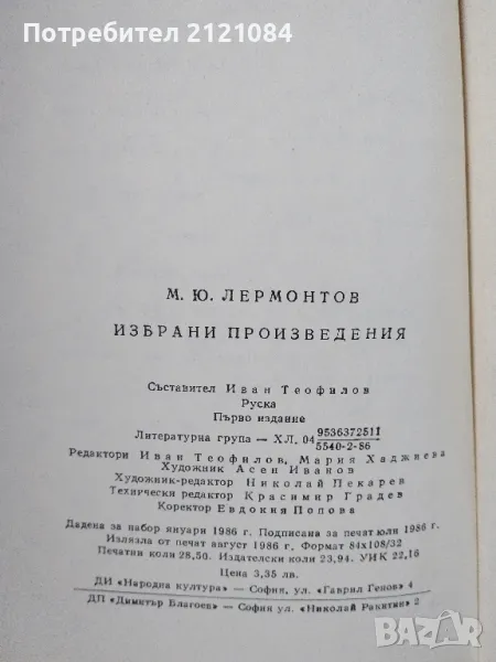 Михаил Лермонтов / Избрани творби → Обява 47276300