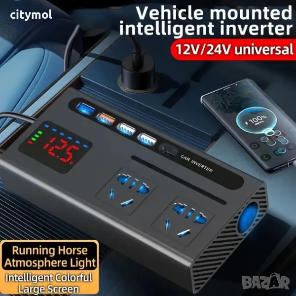 - Инверторът има изход за запалка 12 V.