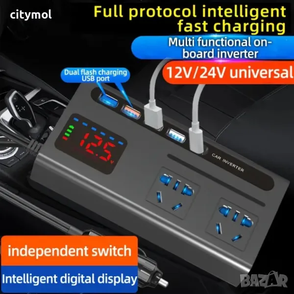 - Инверторът е с компактни размери, което го прави подходящ за използване в колата, предлагайки удобство и гъвкавост, където и да сте.
