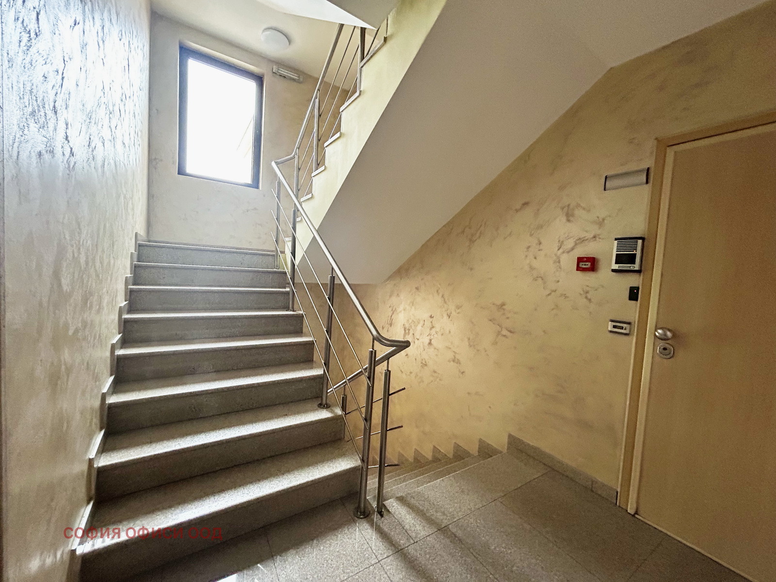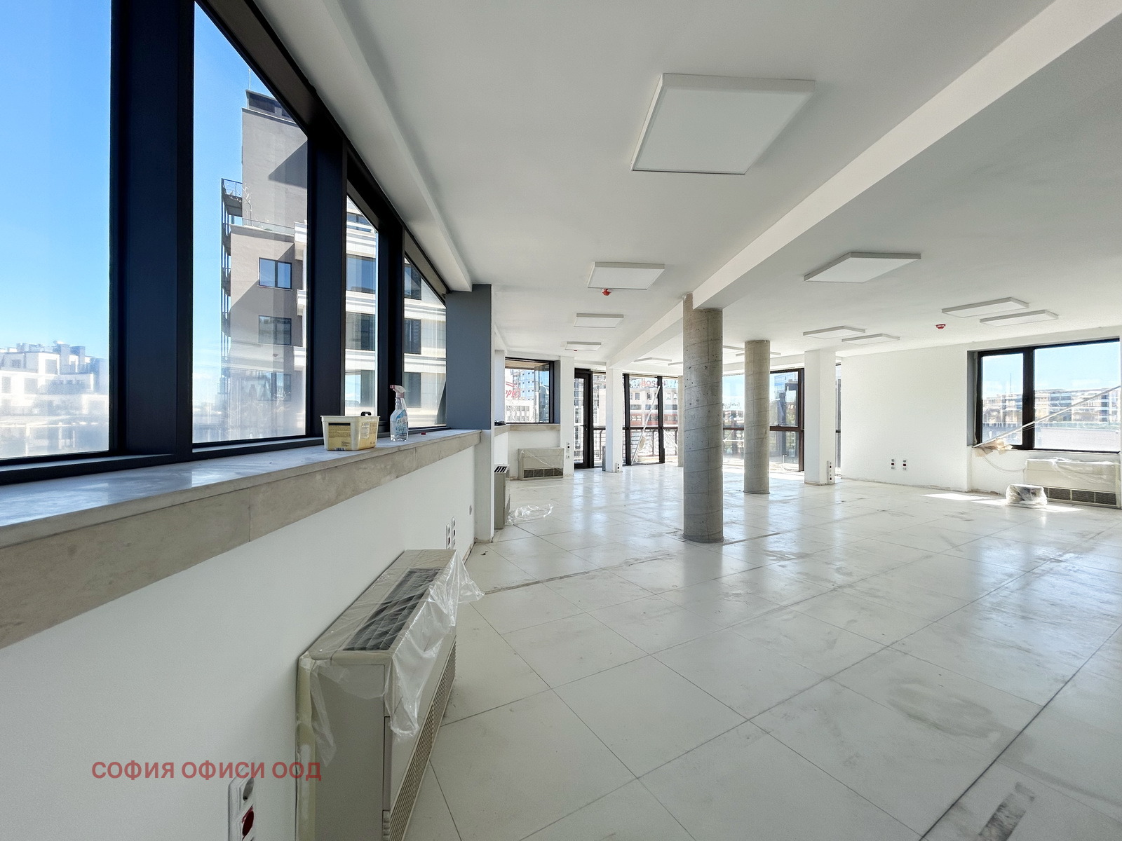 Офисът е с отваряеми прозорци, а окабеляването е САТ 6 в двоен под и подови кутии.
