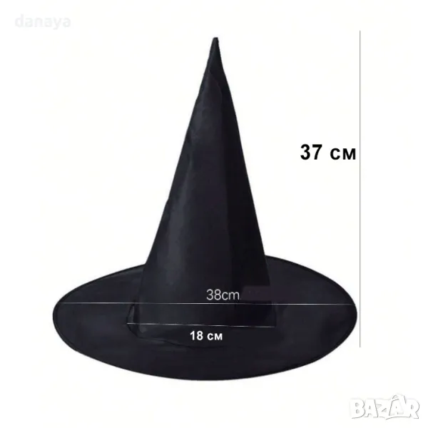 Хелоуин шапка в черен цвят. Парти шапка за магьосник, вещица, Баба Яга, фея и други вълшебни герои. Островърха шапка за Хелоуин. Изработена е от текстил и тел, декорирана е с вещици, тикви, паяжини, прилепи. Подходяща за Хелоуин, карнавали и маскаради, страшно парти, театрални и сценични облекла. Чудесно допълнение към хелоуинската дегизировка.