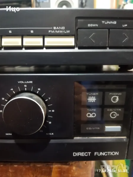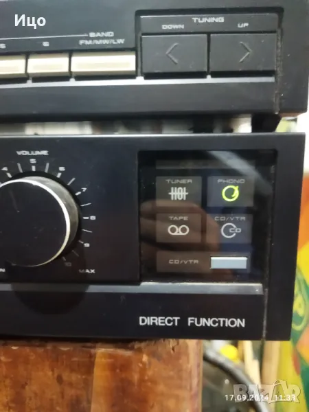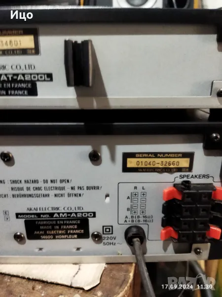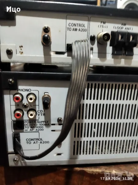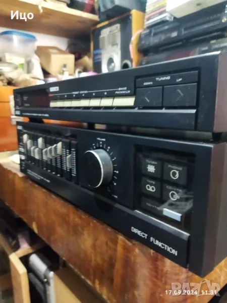 Модел АМ-А200.Усилвател и тунер,в добър външен вид и работно състояние.Усилвателя е с 9 канален графичен еквилайзер,мощност 2/35 вата на канал при 8ом,и отлична честотна характеристика.Изходи за два чифта колони с импеданс 8-16 ома.Тунер с много добра селективност,и осем запомнящи станции.Копче ,,баланс,припуква.Системата е внос,не е обслужвана.Предпочитам тест и лично предаване.