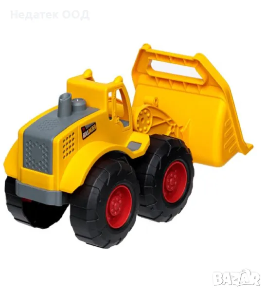 Играчка строителен булдозер с повдигане и накланяне на кофата, в жълто.
