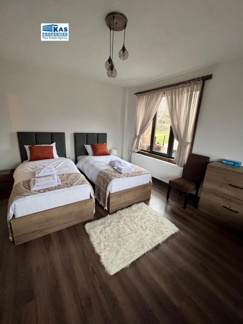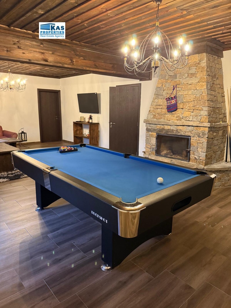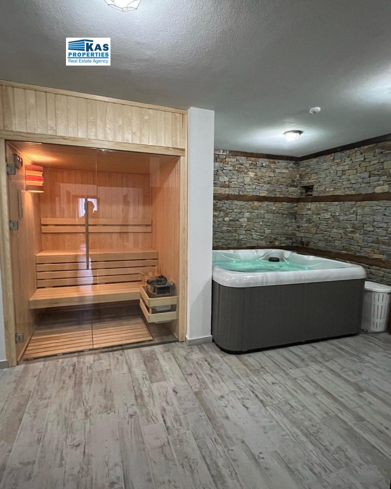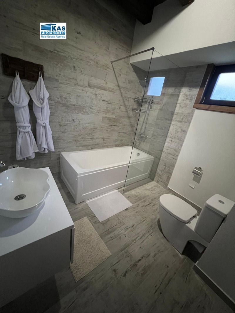 самостоятелна баня и изглед към планината.Общи части - Сауна ,Джакузи , Механа, Зона за Барбекю, паркинг за 6 коли . Строително разрешение за още 2 къщи !