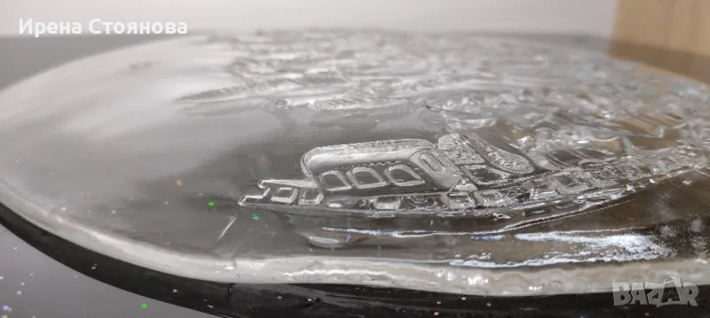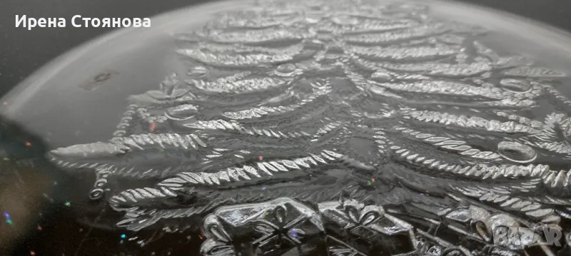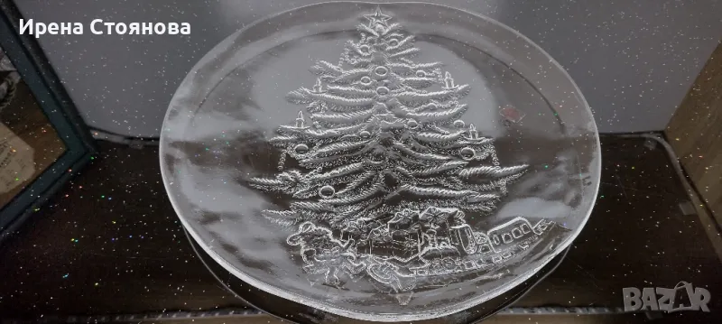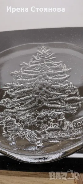 Стъклено плато за сервиране с коледен мотив. Vetreria Etrusca "Holiday collection" , произведено в Италия. Размери в диаметър от 30,5 см до 31,5 см. Ново, без забележки. Цена 38 лв.