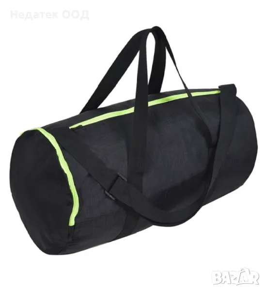 Спортна раница в черен цвят с жълт флуор цип, дръжки за носене (27см) и регулируема презрамка. Издръжлив водоустойчив плат с вътрешен джоб за обувки. Отделно странично отделение за мокри и сухи вещи. Идеален за всякакъв вид дейност. Подходящо за всички възрасти.