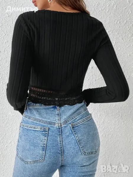 Страхотна нова дамска блуза с дълъг ръкав в черен цвят с дантела