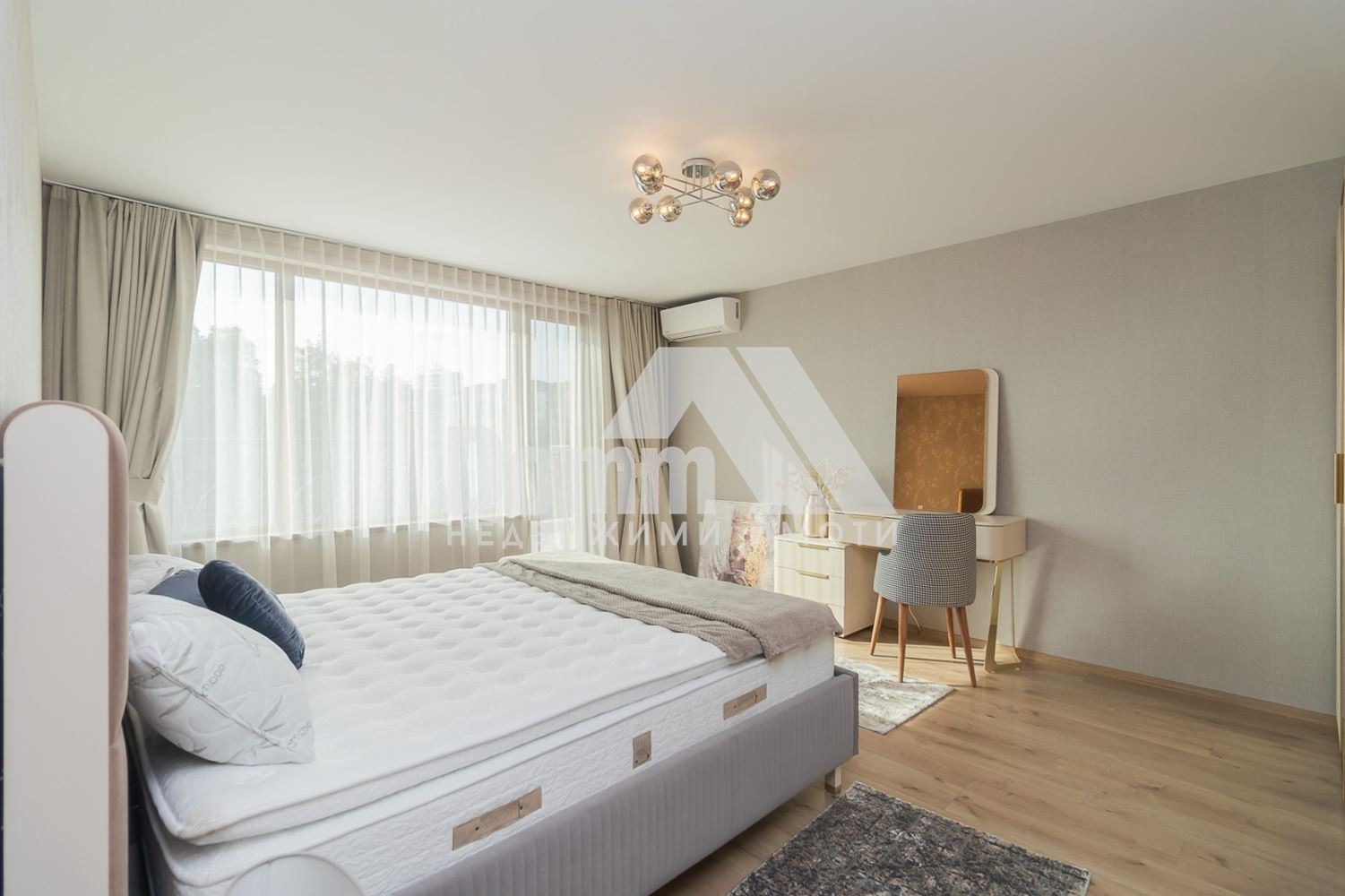Жилището се продава напълно обзаведено и оборудвано с чисто нови мебели и елекртоуреди от най-висок клас .Пространственото оформление е изпълнено е по проект на известен интериорен дизайнер.