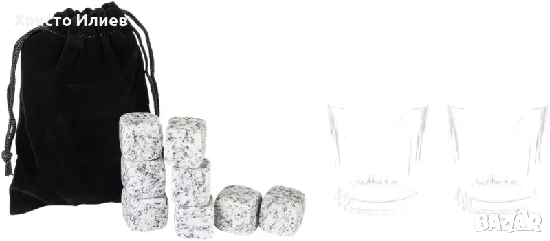 Комплект за уиски Дървена кутия с 2 бр чаши 300мл кубчета за лед Подарък за мъж