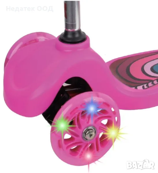 Тротинетка за момиче, светещи колела, розов, до 50 кг.