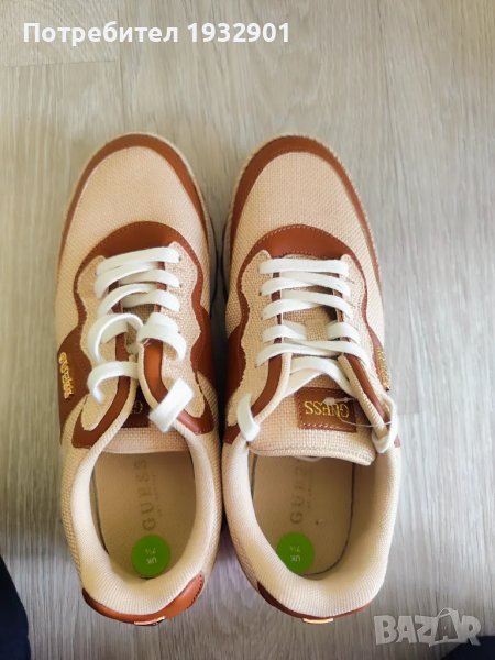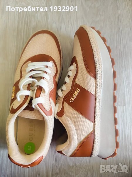 Нови оригинални спортни обувки от кожа и текстил Guess, с равна платформа в кафяво и бежово. Номер 40.5, дължина на стелката 25.5см.