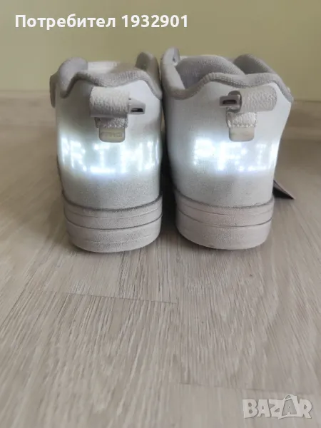стелката е анатомична, с лепенка и декоративни връзки(ластици). Светлините се пускат с бутони на всяка обувка и се зареждат с USB кабел. Номер 31, стелката е 19 см. и номер 36, стелката е 22.5 см. Нови са с етикет и нямат кутия!