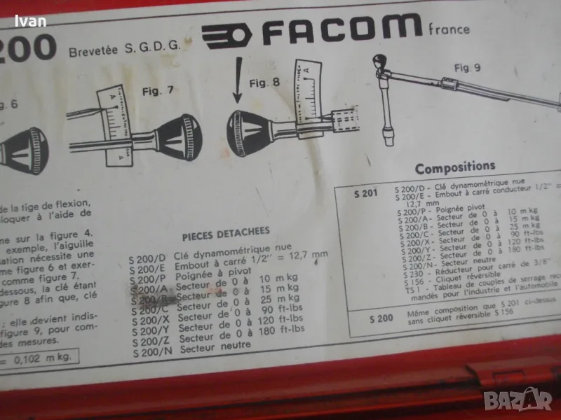 Марка и модел на инструмента - FACOM S200 Brevetee S.G.D.S.