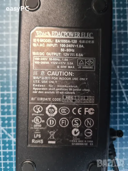 Оригинален захранващ адаптер EDACPOWER ELEC. Model NO: EA1050A-120 12V 5A 60W