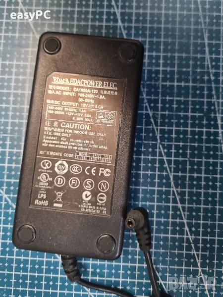 оригинален захранващ адаптер за EDACPOWER ELEC. Model NO: EA1050A-120 12V 5A 60W. Адаптера е употребяван, но е напълно функционален и