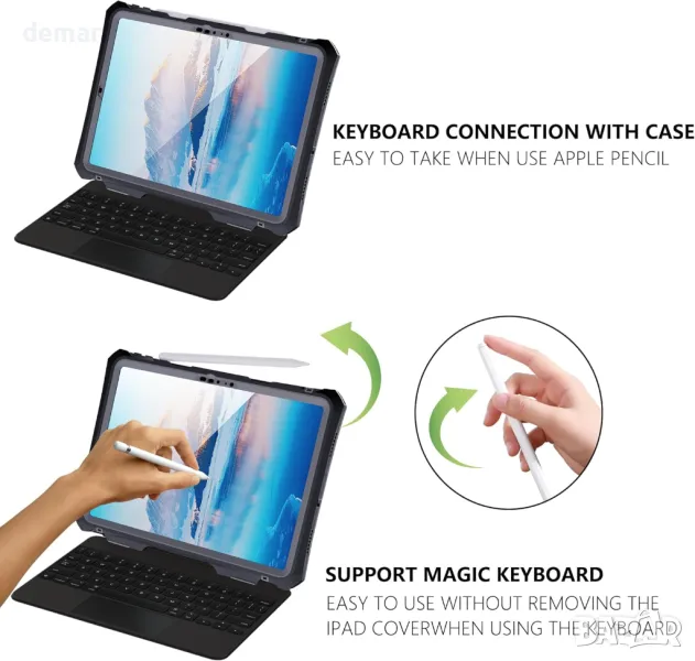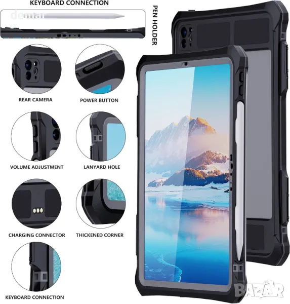 Този водоустойчив калъф за iPad Pro 11 инча (2024) предлага защита на цялото тяло с IP68 водоустойчив, устойчив на падане, прах, удар и сняг, което го прави идеален за външна и активна среда. Включва вграден протектор на екрана, поддържащ функционалността на допир, като същевременно предпазва от надраскване и вода. Тънкият, лек дизайн съчетава издръжливост от военен клас, идеален за строителство или бизнес употреба. Неговият прозрачен преден и заден капак демонстрират дизайна на iPad, а калъфът разполага със стойка и външен клавиатурен интерфейс за допълнителна гъвкавост при различни настройки.