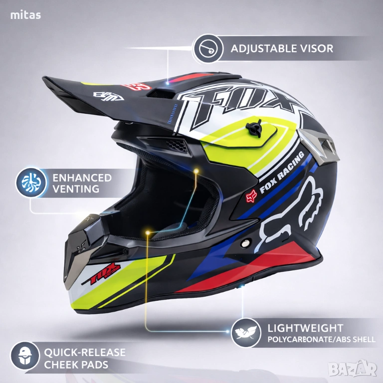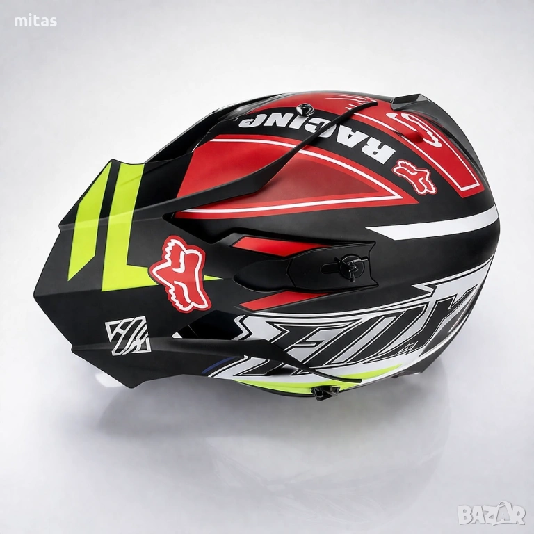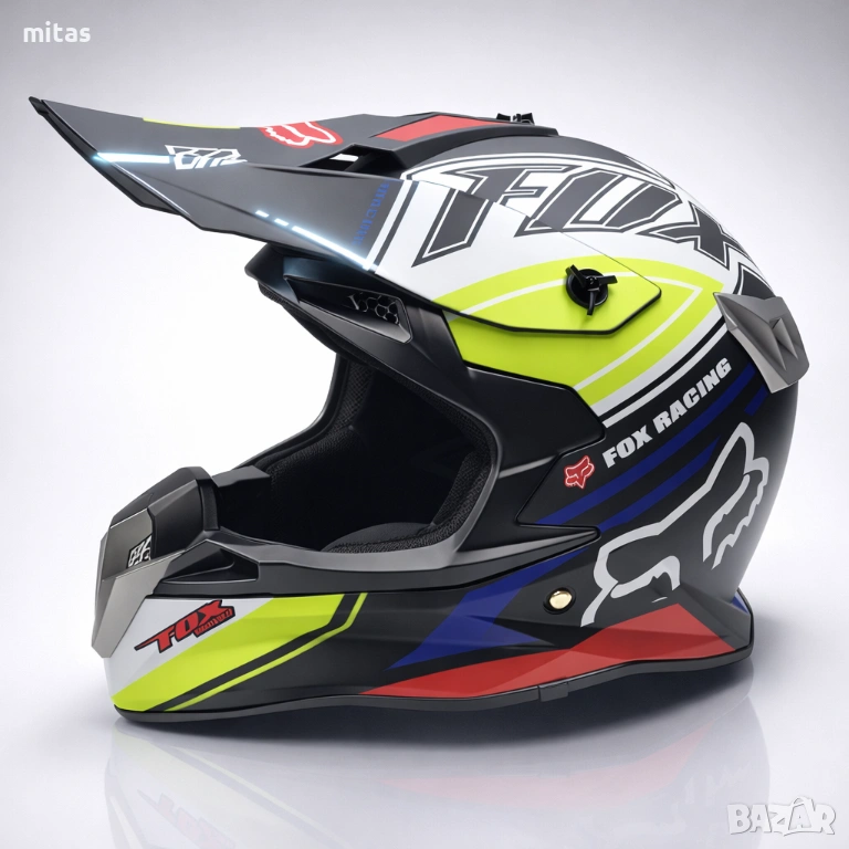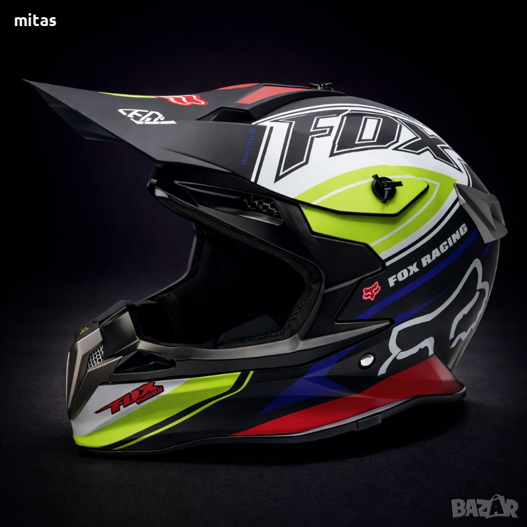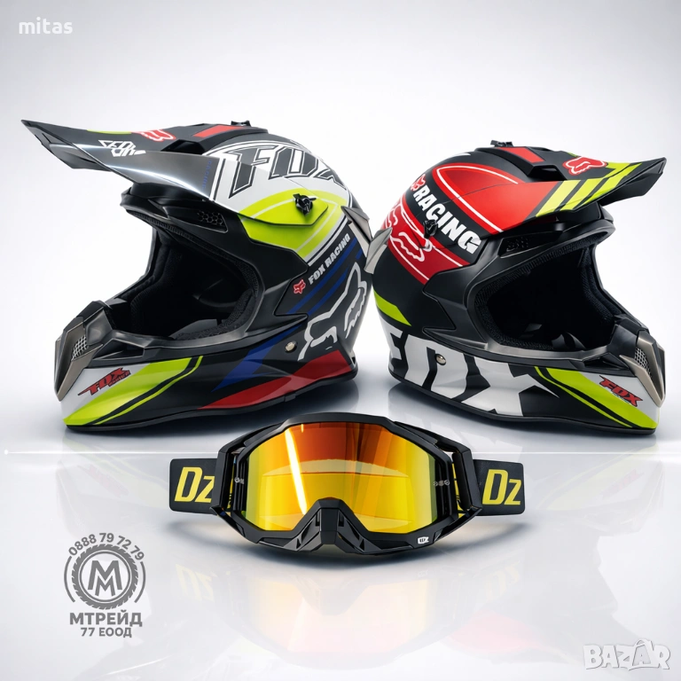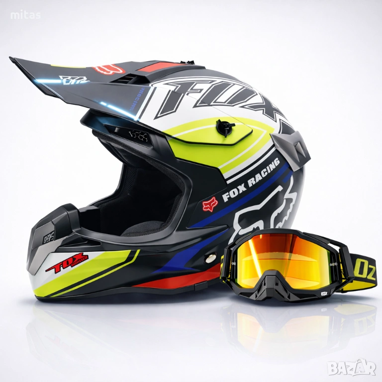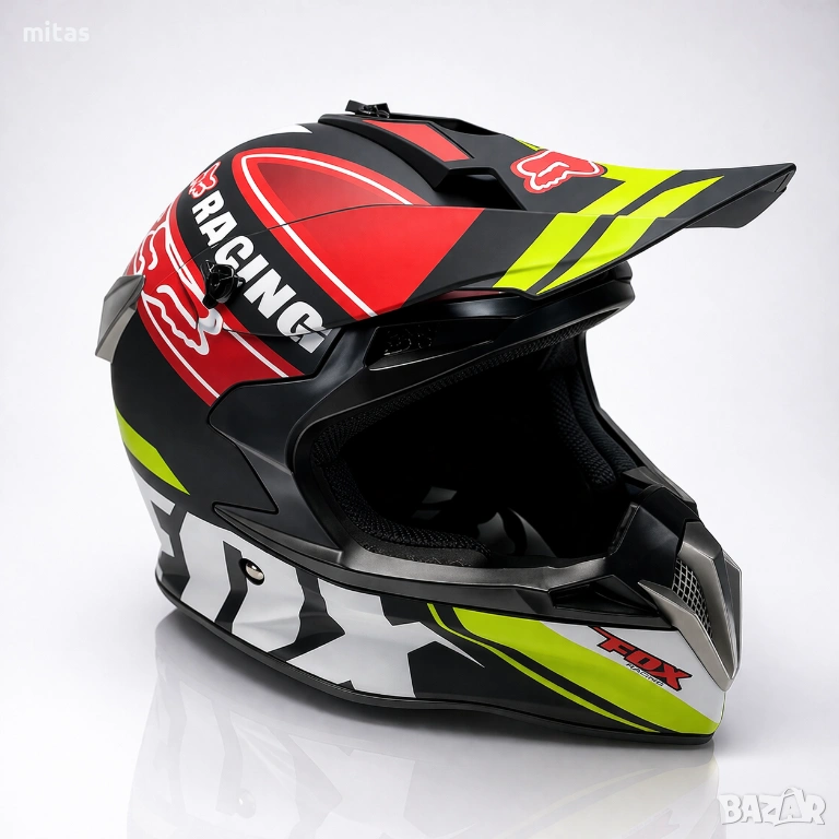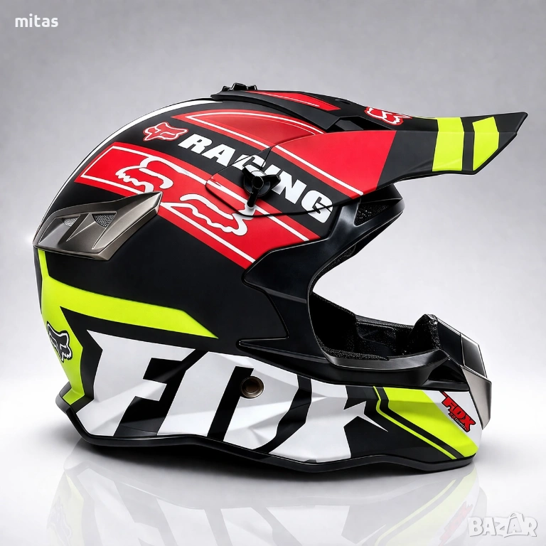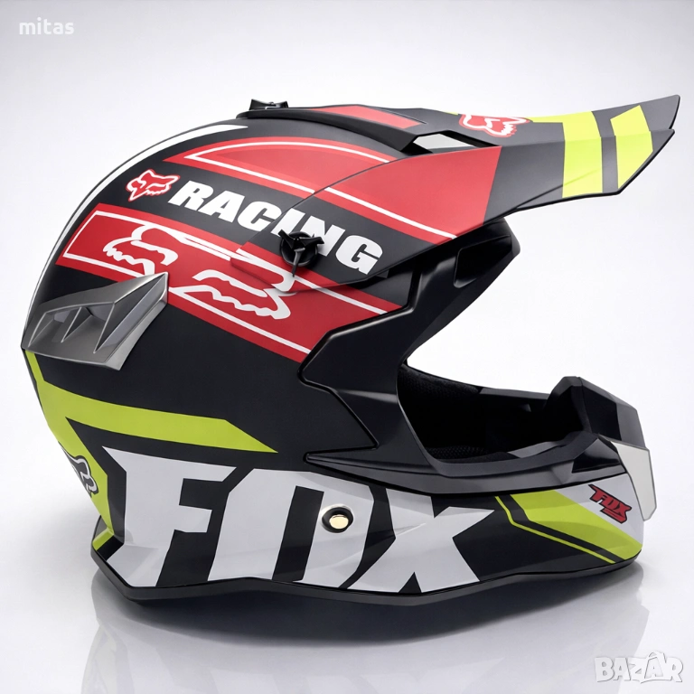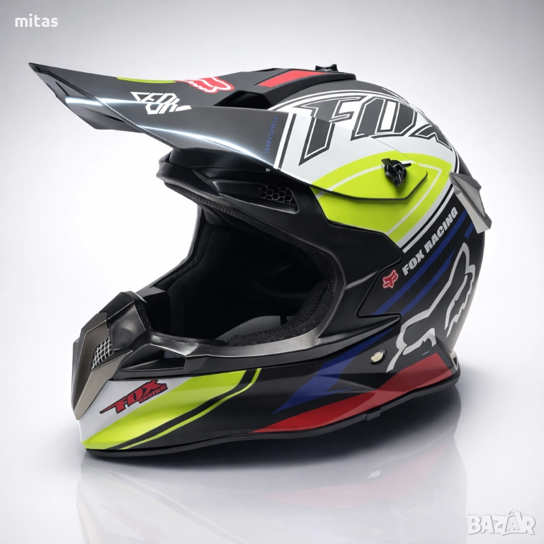 кросова каска FOX, full face каска, каска DOT сертификат, каска размер L, каска за мотор, каска за ATV, каска за бъги, каска за велосипед, каска за електрически скутер, каска за тротинетка, BMX каска, защитна каска, helmet full face, DOT helmet, motocross helmet FOX