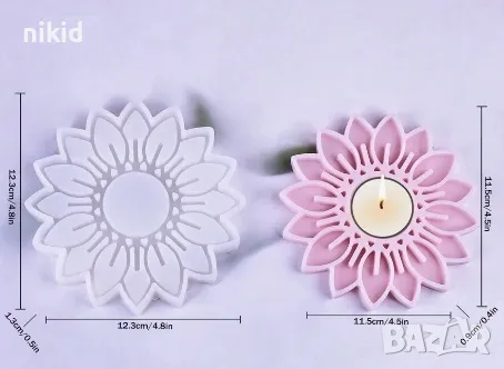 Цвете слънчоглед гербер поставка поднос за свещ свещник силиконов молд форма смола гипс шоколад → Обява 47281008