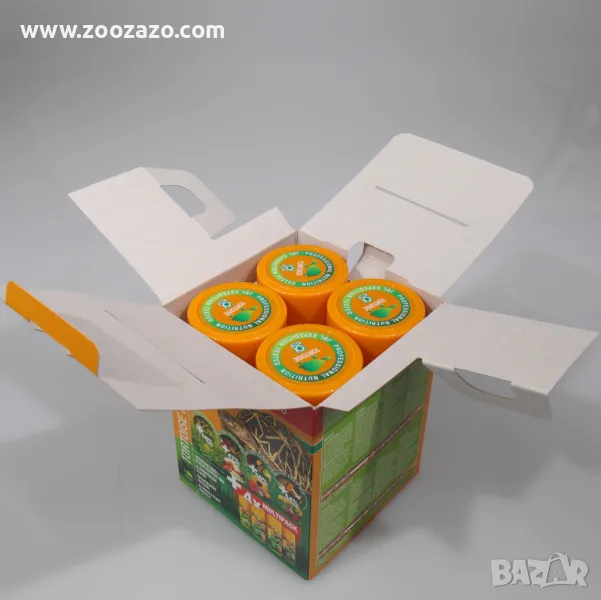 комплект ви позволява да храните вашите костенурки с 4 вида храна с