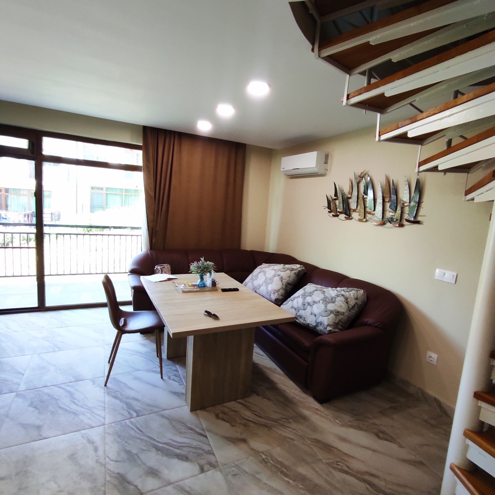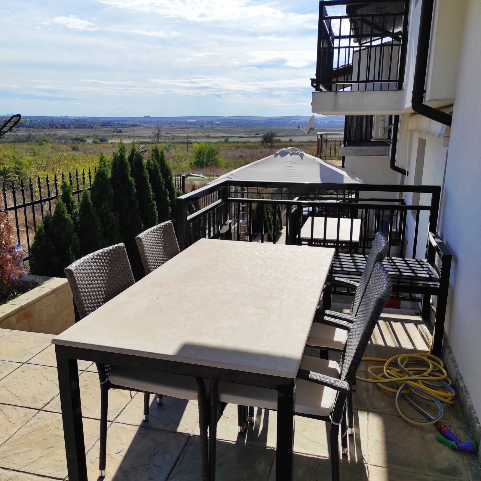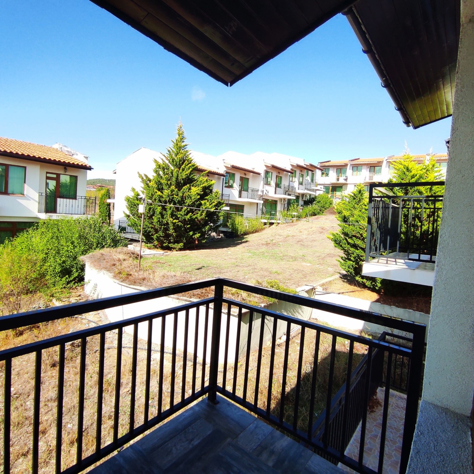 Кошарица се намира на 5-6 км от Слънчев бряг и морето на тихо, спокойно място, далече от шума на туристи и заведения. Къщата е в затворен комплекс, без такса подръжка, построена през 2007г с прекрасна панорама към Слънчев бряг на югоизгок. Скоро обзаведена с много вкус, качествени луксозни материали и мебели. На две нива по 50 кв.м и площадка с летен кът пред къщата. На първото ниво са разположени напълно оборудвана кухня с вградена печка, хладилник, миялна, аспиратор, пералня, голяма трапезна маса със столове, хол с холова гарнитура, голям телевизор, вграден гардероб в коридора, оборудван WC и баня с душ кабина, вградени душове и казанчета, балкон на северозапад. С вътрешна стълба се отива на второ ниво, където са ситуирани две големи спални, с два балкона и в средата втора баня с WC, оборудвана като тази на първи етаж. Спалните са обзаведени със спални и гардероби. Настилките са от гранитогрес и ламинат, а в сан. възли-фаянс и теракот. Дограмите са PVC. Обзавеждането е стилно и подбрано с много вкус, почти неизползвано. Към къщите във вътрешен двор има парко места за паркиране. Прекрасно място за пълноценна почивка и релакс. Има и постоянно живеещи. КЛЮЧ В ОФИСА! За връзка използвайте и нашата ел. поща: