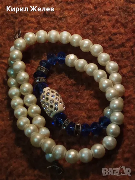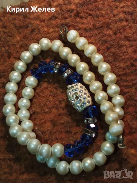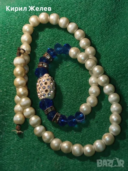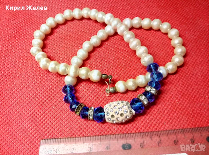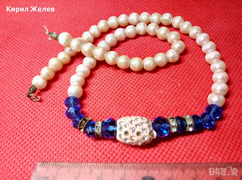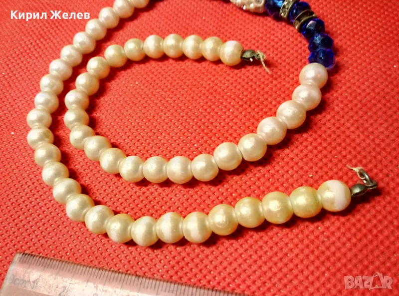 СТАРО ЕЛЕГАНТНО ПЕРЛЕНО ВИНТИДЖ АРТ КОЛИЕ с ИСКРЯЩИ ФАСЕТИРАНИ КРИСТАЛИ и НУЖДА от ЗАКОПЧАЛКА 47315