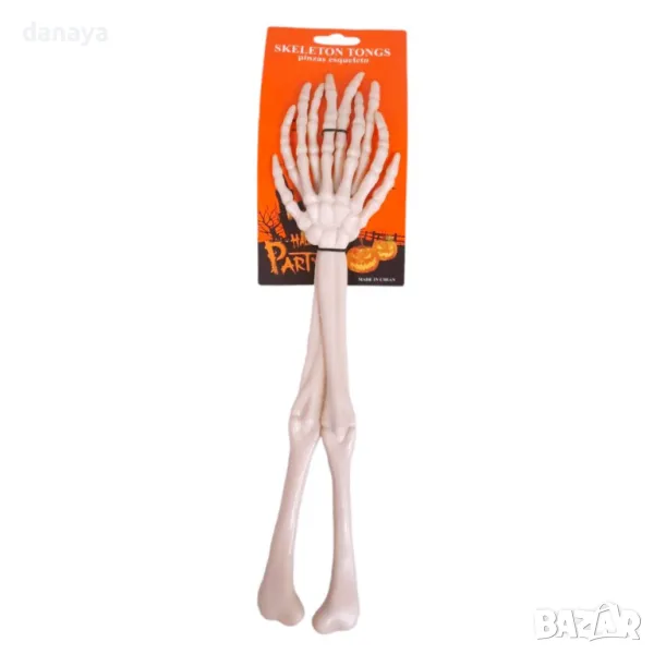 Тези реалистично изглеждащи ръце на скелет са идеалното допълнение към вашите декорации за Хелоуин, театрални постановки или тематични партита. Изработени от устойчива пластмаса, ръцете са леки и лесни за позициониране. С дължина от 35 см, те са подходящи както за вътрешна, така и за външна употреба, добавяйки зловещ детайл към всяко място. Комплектът включва 2 броя ръце, което ви позволява да създадете автентична и завършена визия на декорацията си.