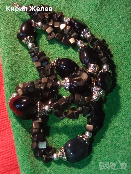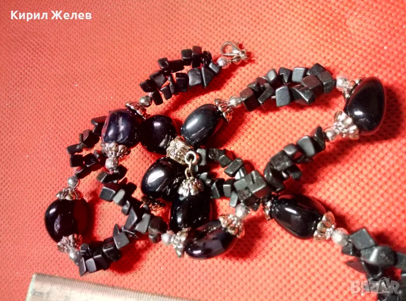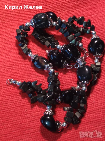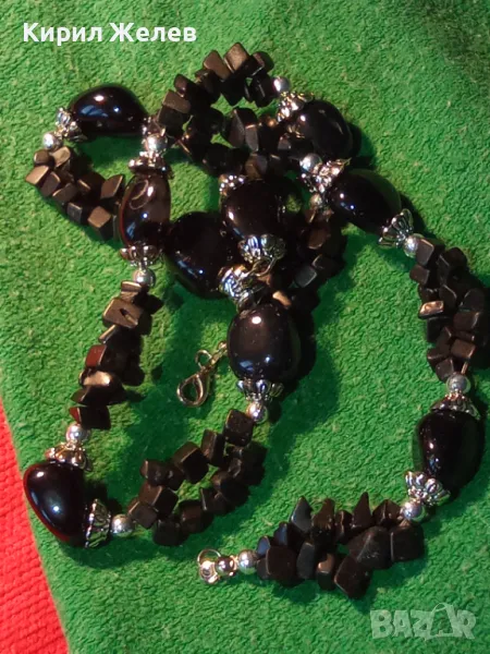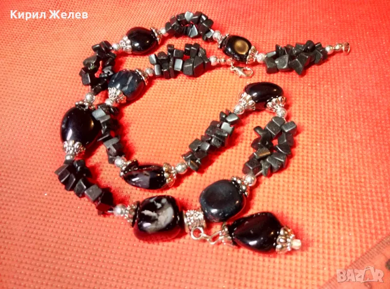 ЕФЕКТНА РЕТРО АРТ СТИЛ ОГЪРЛИЦА от КАМЪЧЕТА ЧЕРЕН АХАТ ХЕНД МЕЙД НАКИТ КОЛИЕ 47333