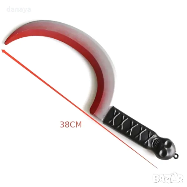Добавете страховит акцент към вашите Хелоуин костюми или декорации с този зловещ сърп. Изработен от пластмаса, сърпът е с впечатляваща дължина от 38 см, което го прави идеален за ролеви игри, маскаради или тематични партита. Черепът на дръжката и детайлите на “кръвта” по острието придават ужасяващ вид и ще привлекат вниманието на всички. Лек и безопасен за употреба, този аксесоар е перфектен завършек към всяка мрачна визия.