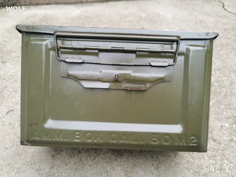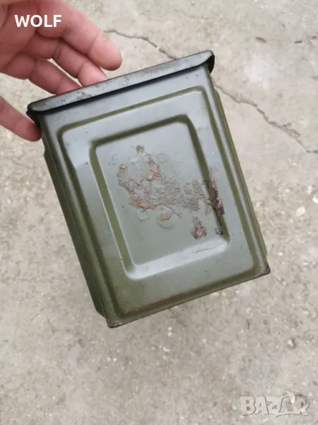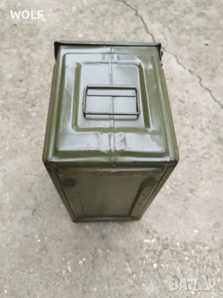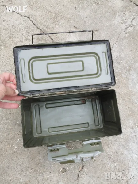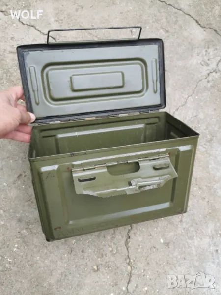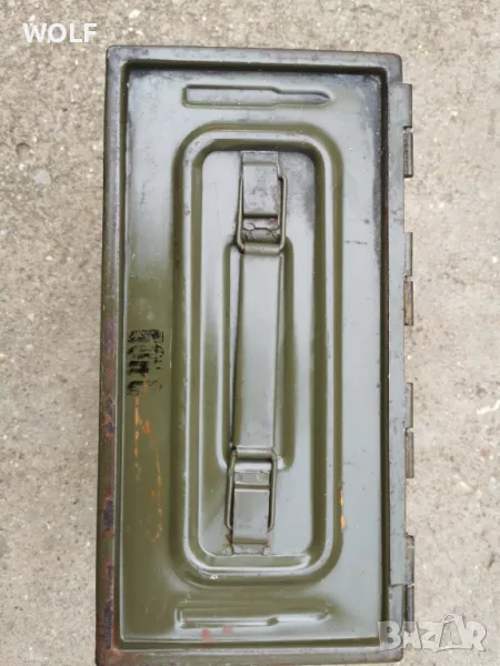 Продавам тая военна кутия от американската армия 50-60години за патрони 30калибър,интересното е че самата кутия е предназначена за 50калибър,размери на кутията дължина 30см,височина 19.5см и широка 15.5см,внос Германия!