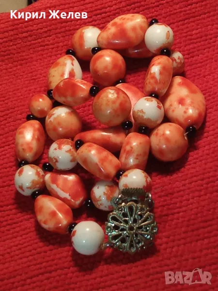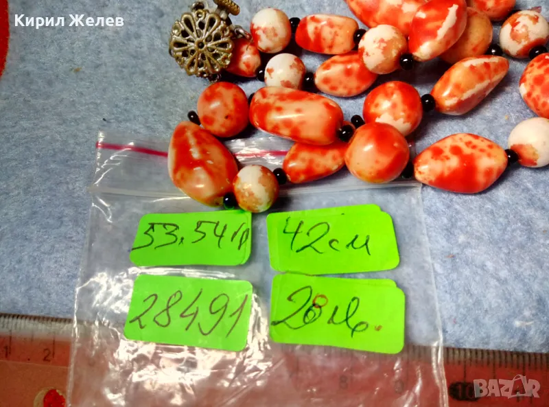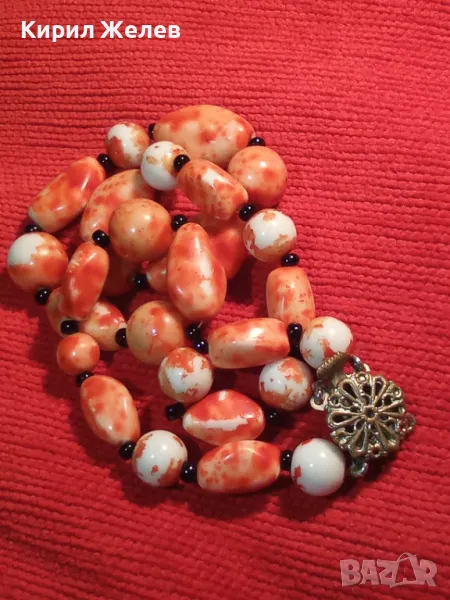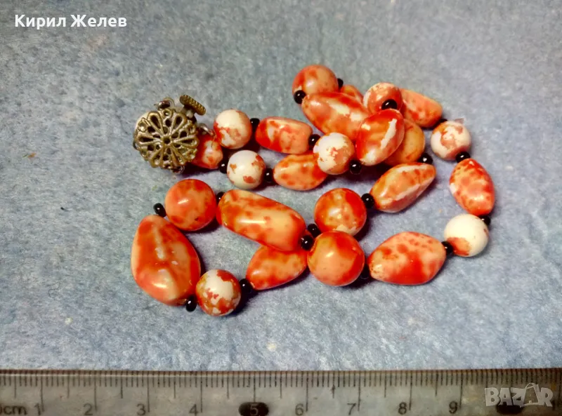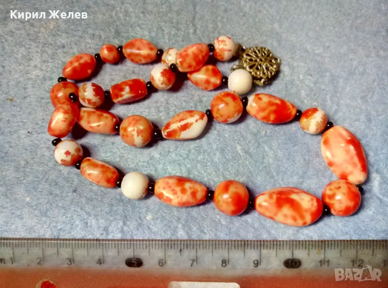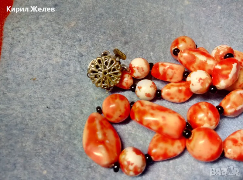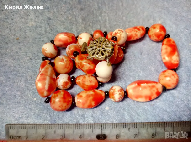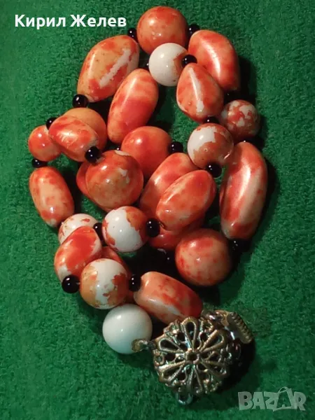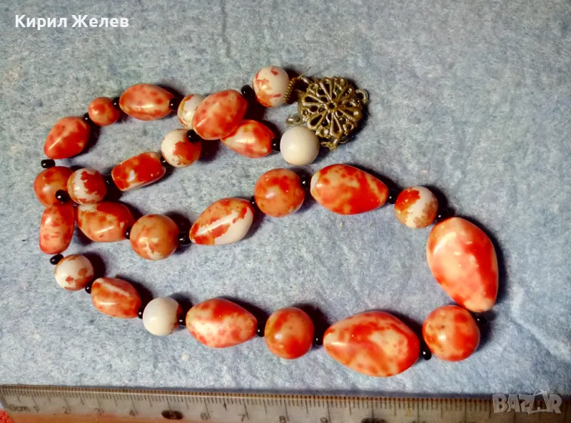 СТАР РЕТРО ГЕРДАН МЪНИСТЕНА ОГЪРЛИЦА с ПОЛУСКЪПОЦЕННИ КАМЪНИ и ФИЛИГРАННА БРОНЗОВА ЗАКОПЧАЛКА 28491