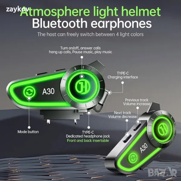 Лесен за инсталиране: Bluetooth слушалките се монтират лесно в каската и са здраво закрепени. Слушалките за каска поддържат различни инсталации на каски, унисекс. Слушалките имат ослепителни светлини, които могат автоматично да превключват между четири различни цветни светлини.
