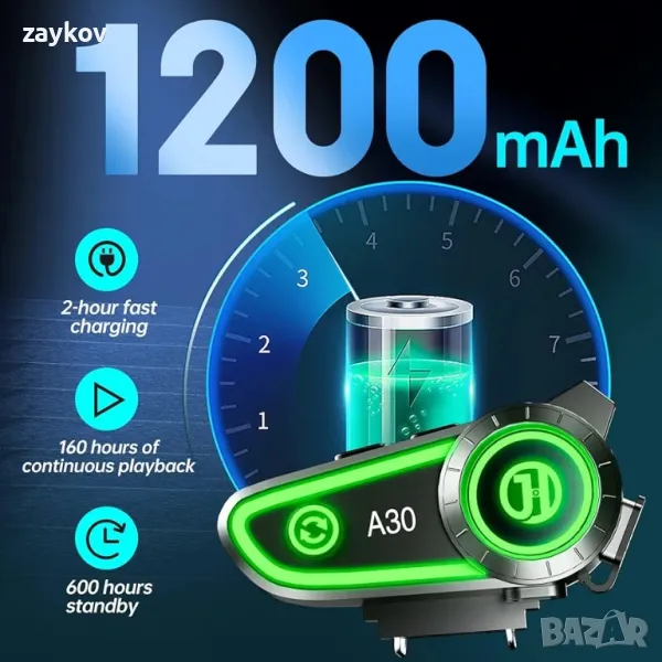 Капацитет на батерията 1200 mAh: високоговорителят за мотоциклетна каска поддържа 2 часа бързо зареждане. Може да играе непрекъснато за 160 часа и в режим на готовност за 600 часа. Кажете сбогом напълно на страха от живота на батерията и захранването и се насладете на целия ден с лекота.
