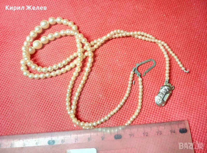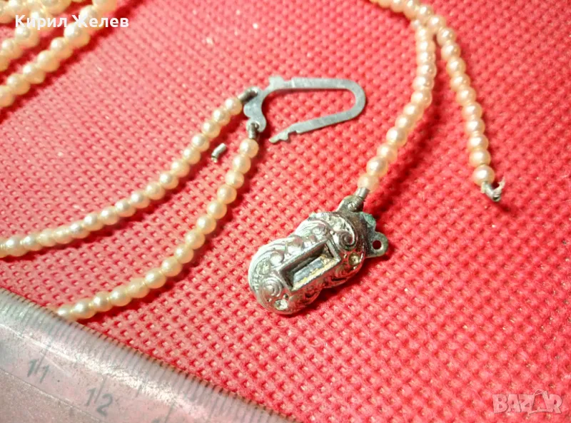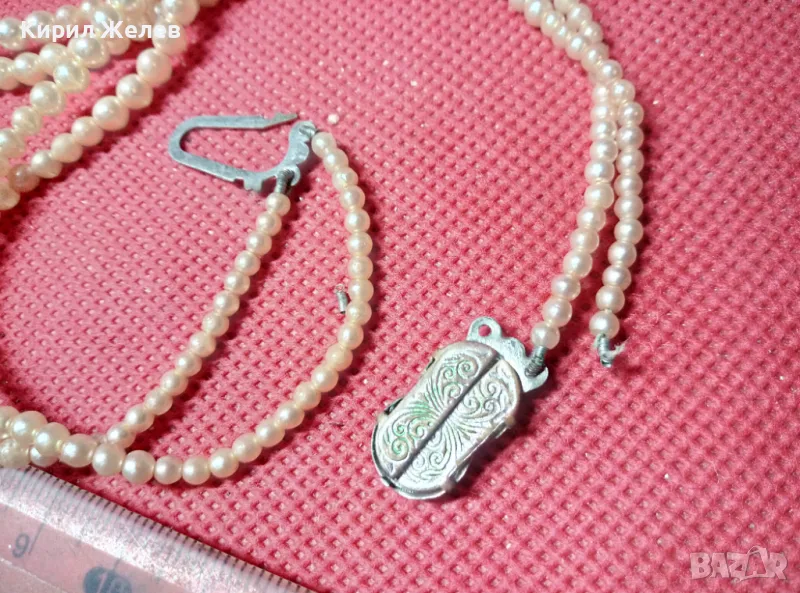 СТАР ДВУРЕДЕН ПЕРЛЕН ГЕРДАН ОГЪРЛИЦА ЧЕШКИ ПЕРЛИ с КРАСИВА ПОСРЕБРЕНА ЗАКОПЧАЛКА РЕТРО КОЛИЕ 27635
