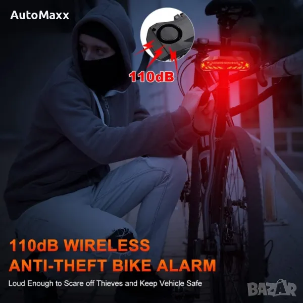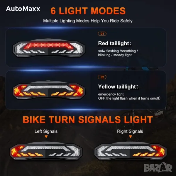 Интелигентна задна светлина с мигачи алрма и клаксон за велосипед → Обява 47284401