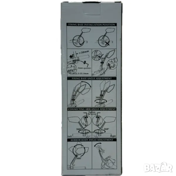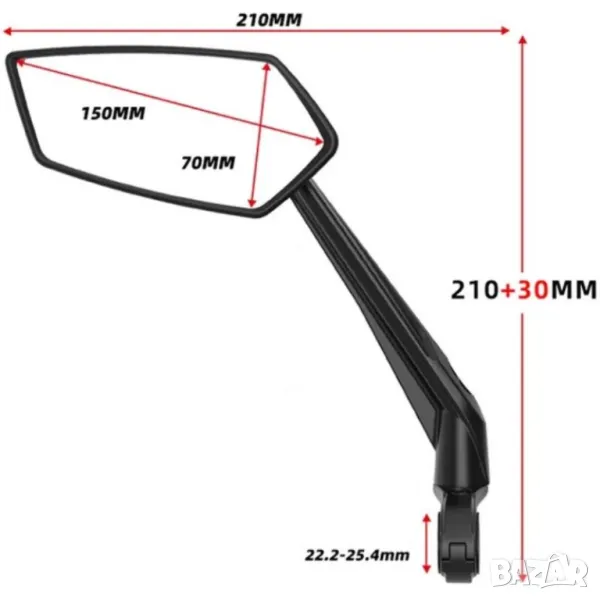 Това огледало пасва на кормила, вариращи с диаметър от 22.2 до 25.4 мм, което го прави универсално за използване на различни велосипеди, ATV, скутери и дори мотоциклети.
