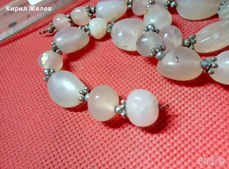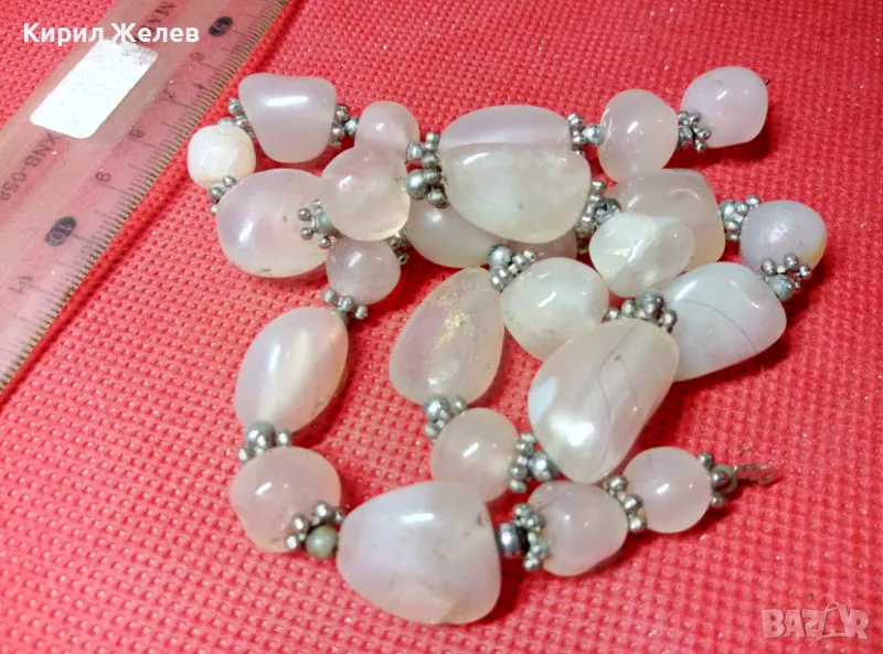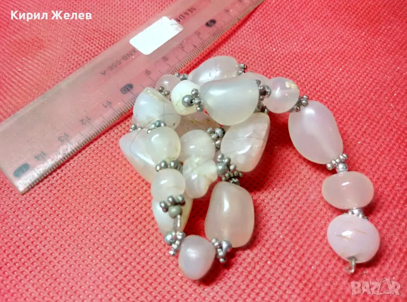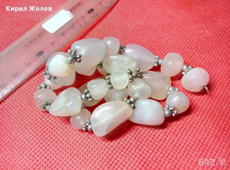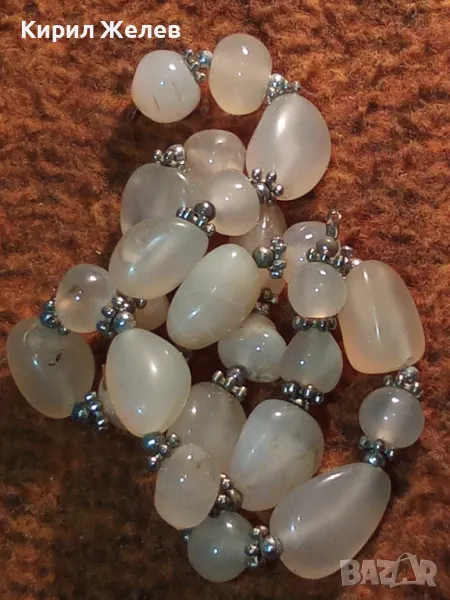 РЕТРО АРТ ГЕРДАН от НАТУРАЛНИ КАМЪЧЕТА МЛЕЧЕН КВАРЦ с НУЖДА от ЗАКОПЧАЛКА 47332