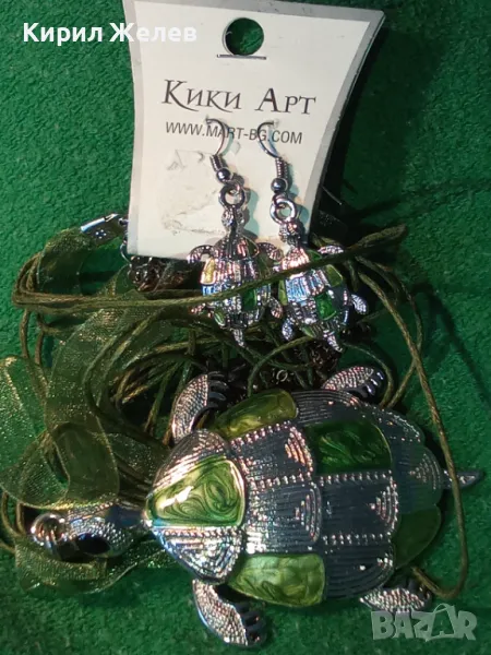 СРЕБРИСТ БИЖУТЕРИЕН ВИНТИДЖ АРТ КОМПЛЕК КОЛИЕ и ОБЕЦИ с КОСТЕНУРКИ 47365