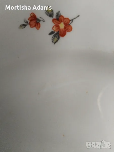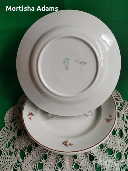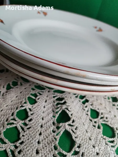 🌺🌺🌺 Комплект от четири съветски чинии за основно ястие с красив, нежен декор и диаметър 24см., керамика/фаянс, Будянский фаянс. завод, период 1965- 1967г. Здрави, със следи от времето (рехавост на канта на места, петна и драскотини по глазурата, видими под ъгъл).