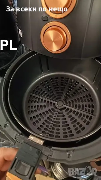 Фритюрник с горещ въздух HIBERG , 1200W, 3.2l, Таймер, Черен/розово злато