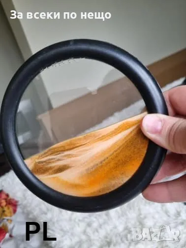 Това е много хубава художествена картина с жив пясък. Продуктът има кръгъл вид. Има три цвята пясък, черен, бял и златен. Създава различни красиви пейзажи с различни оформления и завъртания. Кръглият дизайн го отличава от останалите, той не само има модерно усещане, но и има спокойна и стабилна атмосфера, която е различна от другите.