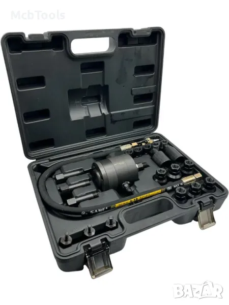 Съдържа пневматичен вибро екстрактор и множество адаптори, съвместими с широка гама дизелови инжектори, монтирани в МПС.