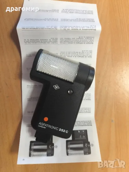 продавам светкавица AGFATRONIC 252 C computer,има книжка за работа, имам още много други фотоапарати, камери, обективи, чанти, светкавици, батерии, бинокли, скенери, зарядни устройства, касети, филтри, ремъци, ленти, при закупуване на повече неща отстъпка