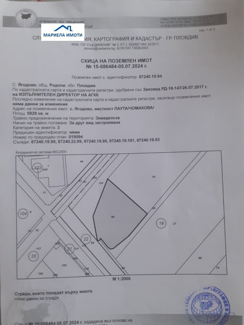 Намира се на главния път Пловдив-Ягодово на входа в близост до табелата.Подходящ за складова база,производствена и др.В близост до оранжерии.За контакти:Мариела Йорданова 0899107396