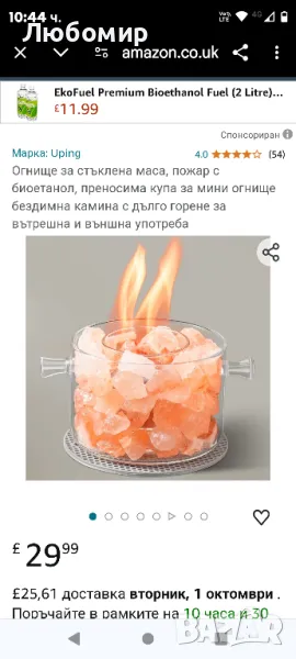 Огнище за стъклена маса, пожар с биоетанол, преносима купа за мини огнище