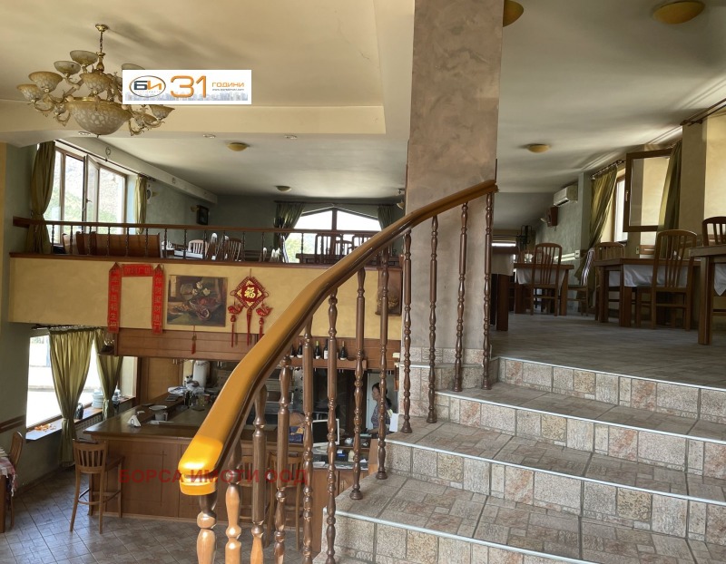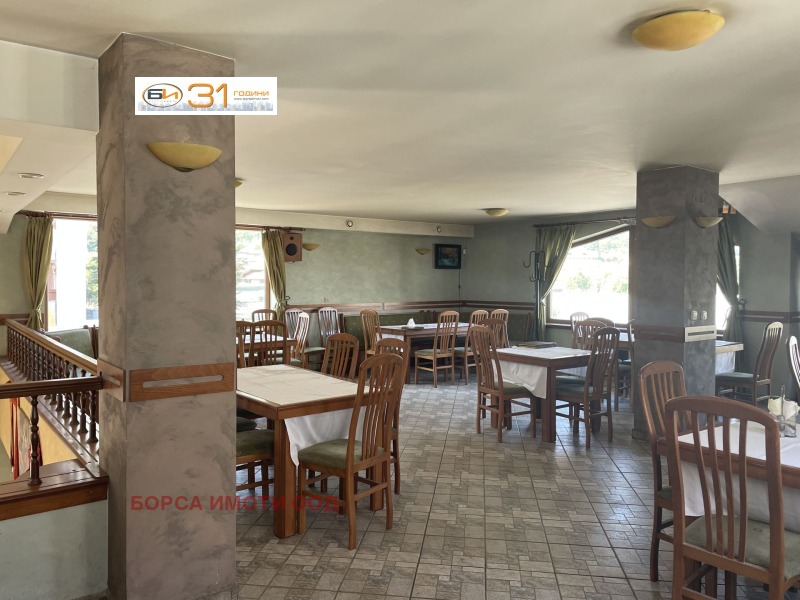 РЕСТОРАНТ с ЛЯТНА ГРАДИНА и ОФИСИ Централна част, сграда по кадастър - застроена площ 137 кв.м., 3 етажа, разгърната застроена площ 411 кв.м., удостоверение за въвеждане в експлоатация от 2006 г. за РЕСТОРАНТ и ОФИСИ . Сградата се състои по проект от: ПРИЗЕМЕН етаж - застроена площ 136.60 кв.м., включващ помещения за подготовка яйца, за подготовка зеленчуци и за отпадъци, складове за амбалаж и за алкохол, хладилна камера плюсова, агрегатно помещение, пералня, баня, гардеробно за персонал, гараж - 41.60 кв.м. за 3 автомобила и коридор. Връзката между приземният етаж и първото ниво на ресторанта е посредством вътрешно стълбище. РЕСТОРАНТ - две нива, 1-во ниво - застроена площ 146.65 кв.м., включващо: зала - 32.00 кв.м., барбекю - 7.20 кв.м., бар - 4.60 кв.м., помещение подготовка месо - 4.70 кв.м., умивалня - 5.20 кв.м., склад - 1.90 кв.м., офис управител - 5.80 кв.м. и сервизни помещения - 5.40 кв.м.; 2-ро ниво - застроена площ - 91.80 кв.м., включващо: зала - 73.00 кв.м.. Връзката между двете нива на ресторанта е посредством вътрешно стълбище. ОФИСИ - застроена площ 88.30 кв.м., на 3-ти етаж, включващи: приемна - 24.60 кв.м., офис управител - 14.90 кв.м., счетоводство - 10.60 кв.м., офис - 6.60 кв.м., антре - 4.30 кв.м. и сервизни помещения - 3.40 кв.м.. Етажът се ползва за жилище и е с вход, отделен от този за ресторанта. Сградата е изградена в собствен поземлен имот с площ 280 кв.м., като незастроената част от него се ползва за лятна градина към ресторанта. Изградени и функциониращи инсталации: водопровод и канализация,