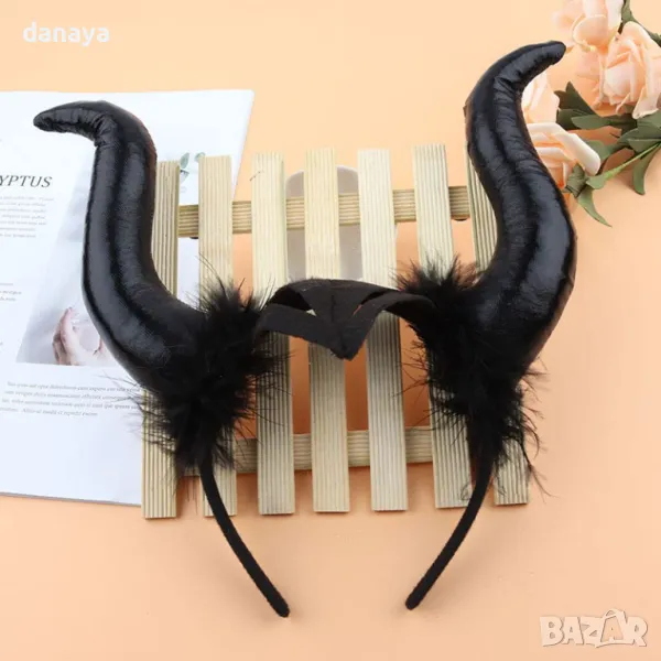 Черна диадема с червени дяволски рога или черни дяволски рога и пух около тях. Чудесен аксесоар към дегизировката за Хелоуин. Диадемата е подходяща за партита, театрални и сценични костюми, училищни партита. Рогата са изработени от плат с пълнеж от изкуствени влакна. Диадемата е пластмасова.