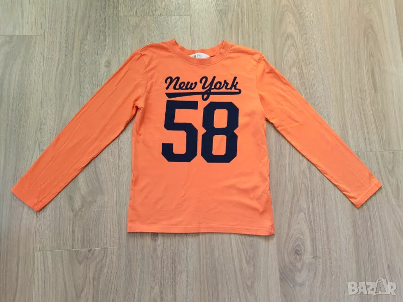 3. Блузка с надпис в оранжево H&M (снимка 4) - размер по етикет - 122/128 см. Тънка е за сезон пролет-есен. 100% памук. дължина - 49 см, ширина подмишници - 36 см, ръкав - 46 см